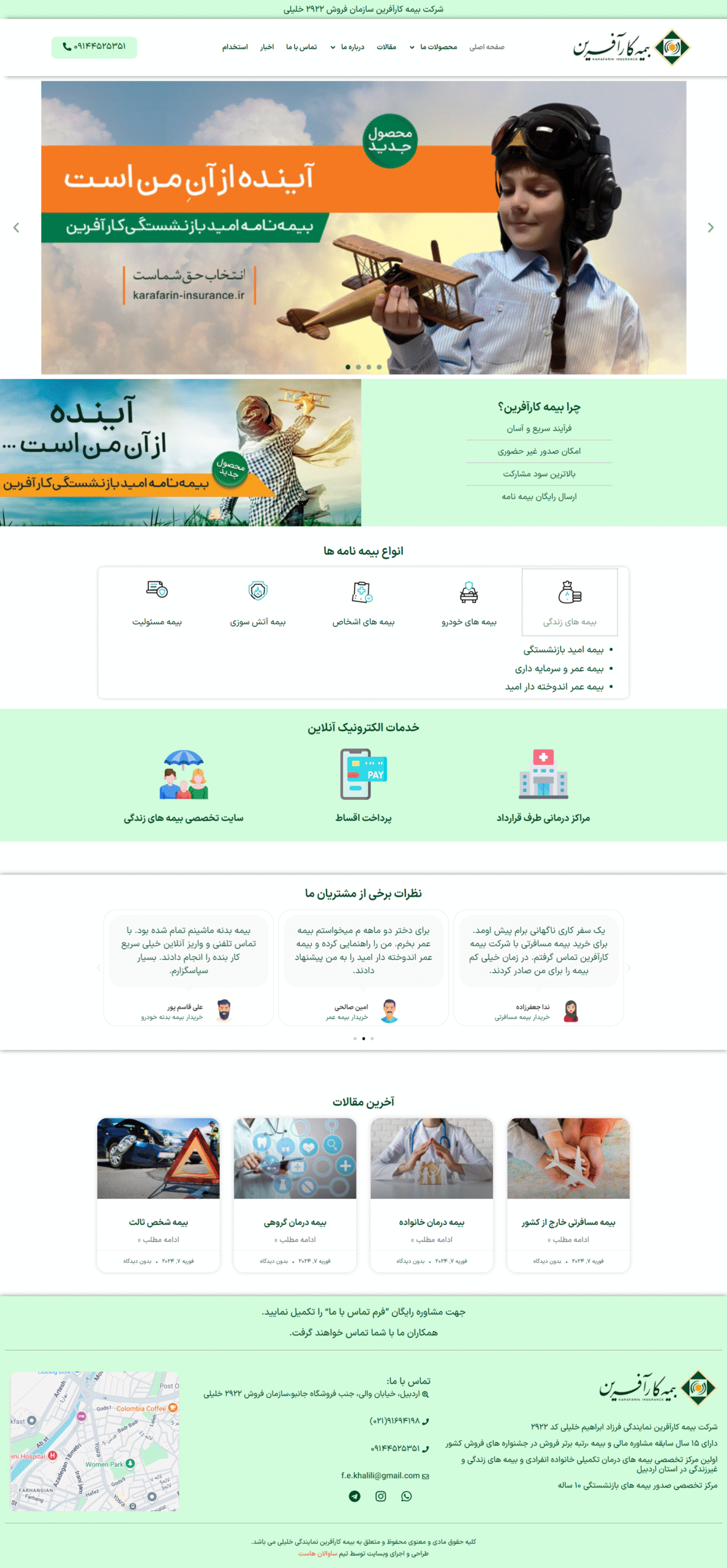 طراحی و اجرای سایت شرکت بیمه کارآفرین نمایندگی خلیلی